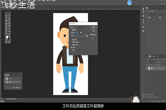 在导出“JPEG”格式时文件的品质越高文件越清晰,同时文件的内存也就越大。