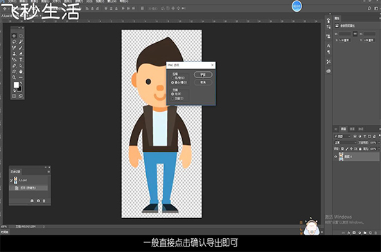 在导出“PNG”格式时,一般直接点击确定导出即可,与“JPEG”不同的是“PNG”是带有通道的图片。