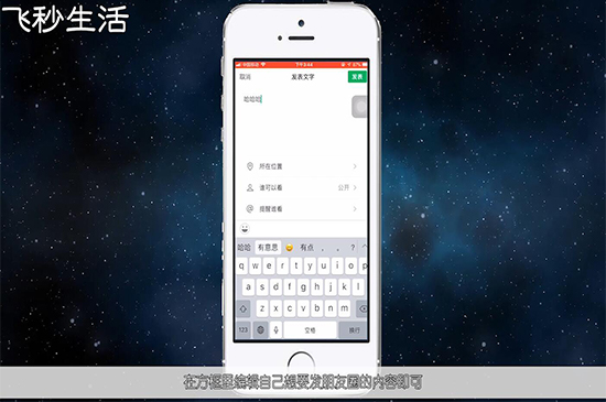 3、在方框里编辑自己想要发朋友圈的内容即可。