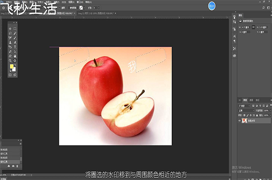 打开图片,可以使用修补工具将水印圈选,将圈选的水印移到与周围颜色相近的地方,可以进行多次操作直到水印去除