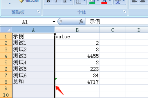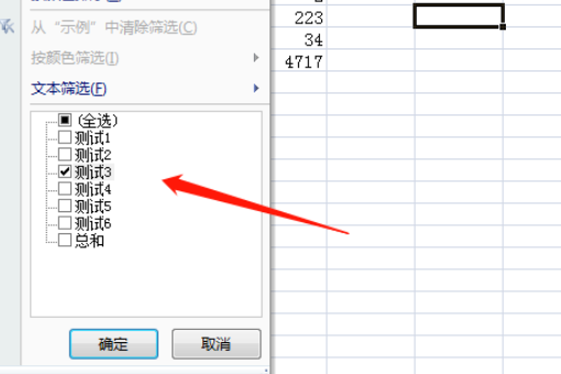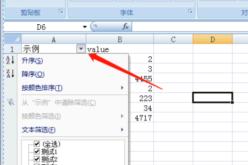 4、选择完毕后,前选中的那一列上方出现一个下拉按钮,点击下拉按钮。