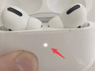 1、长按后方的重置按钮,将耳机重置。