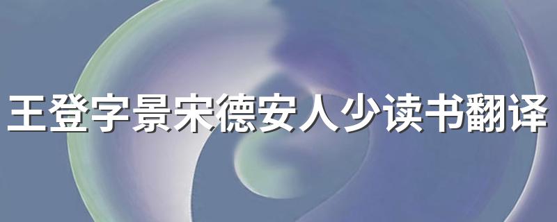 王登字景宋德安人少读书翻译 王登字景宋德安人少读书翻译简述