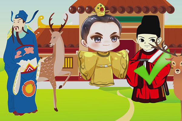 赵高说:“臣得了一匹好马,前来献给陛下。”胡亥表示这是鹿,赵高就问群臣,朝堂上的到底是鹿还是马。大臣们有的说是鹿,有的说是马,赵高于是弄清楚了说鹿和马的官员。