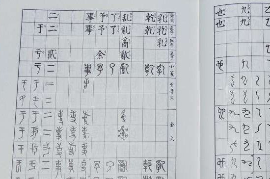 篆书与汉字的对比主要来源于字体的结构,篆书分为大篆以及小篆,其中大篆是甲骨文,以匀圆的线条为主,字体的外形更像是画画,小篆阶段字体开