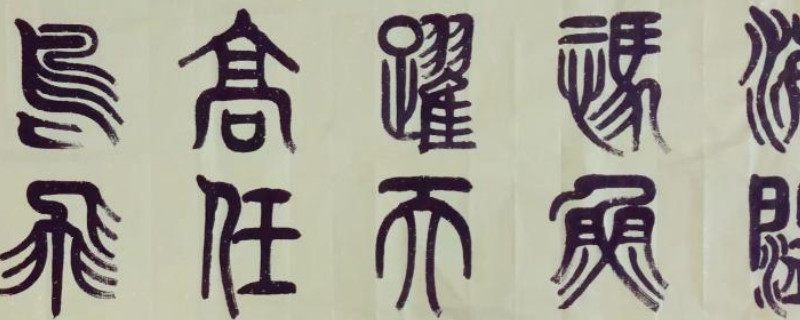 篆书中的大篆字体为匀圆的线条,保留古代象形字的特点,小篆字体结构成纵势,布白对称匀称,用笔时中锋圆转,每个线条粗细相差不大,具有圆润