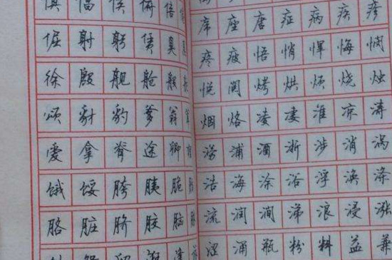 楷书用毛笔书写比较简单,因此用钢笔写楷书的时候比较难一些,需要注意行笔、收笔,仔细的进行临摹,在练习直冲式落笔时,需要将笔尖在纸上方三毫米左右停留,然后迅速的向纸面斜着滑落。