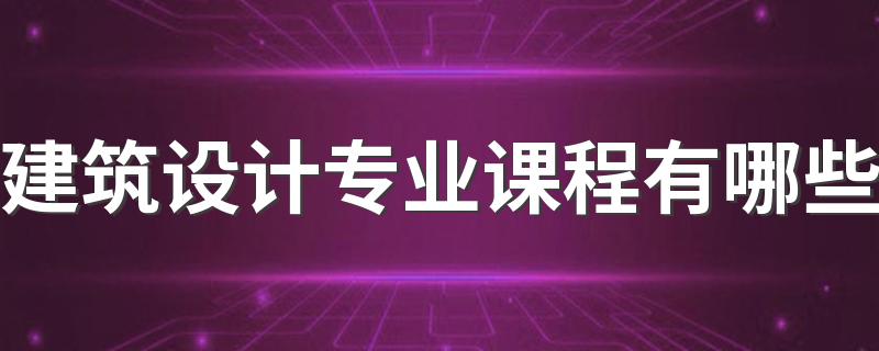 建筑设计专业课程有:建筑力学分析与结构选型、建筑材料鉴别与应用、建筑工程定额与预算、民用建筑设计、建筑设备概论、建筑物理、建筑阴影与透视、砖混结构、建筑工程识图与制图等。
