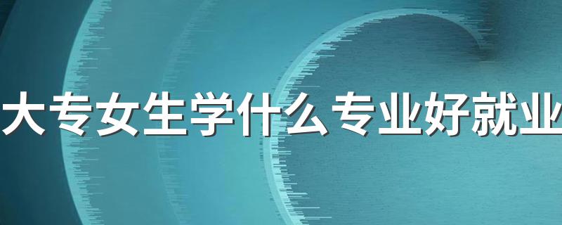 大专女生适合的专业有:护理学专业、电子商务专业、空中乘务专业、学前教育、医学美容技术专业、护理专业、英语教育专业、旅游管理专业、人力资源专业、会展策划与管理专业等,都是比较好就业的,发展空间也很大。