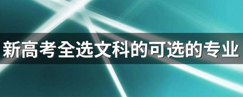 新高考全选文科的可选的专业有管理科学与管理工程类、工商管理类、公共管理类、 农业经济管理类、图书档案学类、中国语言文学类、外国语言、新闻传播学类等。