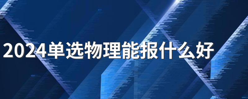 2024单选物理能报的好专业有物理学、海洋技术、通信工程、软件工程、核工程与和技术、无人系统工程、机械工程、电气工程、电气工程及其自动化、网络工程、信息安全、道路桥梁与渡河工程、飞行设计与工程、武器系统与工程等。