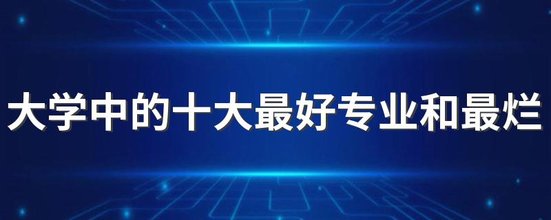 大学最好专业有:信息安全专业、计算机科学与技术专业、财务管理专业、软件工程专业、英语专业、医学类专业、机械专业、网络工程专业、市场营销专业、工商管理专业。大学最烂专业有:国际经济与贸易专业、材料科学与工程专业、旅游管理专业、环境科学与工程专业、电子商务专业、哲学专业、生物工程专业、人力资源管理专业、法学专业、汉语言文学专业。