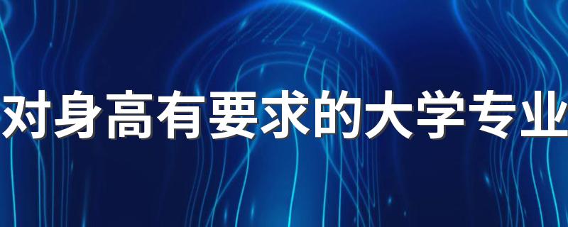 对身高有要求的大学专业有:飞行类专业、空乘类专业、艺术类专业、体育类专业、军警类专业、国际关系类专业、医学类专业、公安类专业、师范类专业、其他专业等。这些专业会对考生有严格要求,连身高都是有限制的。如果孩子身高不够就不要报考了,成绩再好也不要。