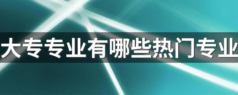 大专热门专业有:铁道工程技术专业、医药专业、会计学专业、外贸专业、护理学专业、机械电子工程专业、计算机应用技术专业、电气化铁道技术专业、汽车智能技术、大数据技术与应用专业等。
