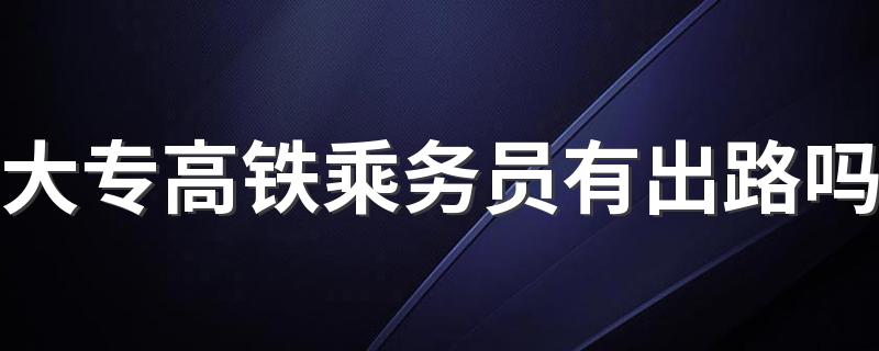 大专高铁乘务有出路。毕业后就业方向有:从事城轨交通运营管理、铁路运输企业管理工作、行车调度指挥、客运服务等工作,从事高铁动车乘务服务工作。亦可胜任车站值班员、乘务员、站务员、行车调度员、货运值班员、客运值班员、列车值班员、值班主任直到乘务长、值班长、乘务安全员、乘务安全员等多个铁路职工岗位。