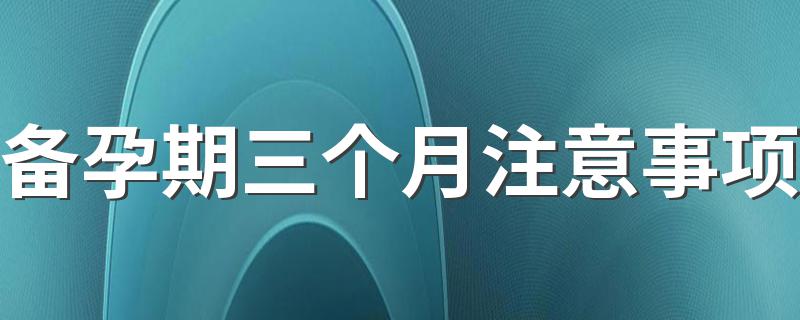 1、备孕期三个月注意事项。备孕期间要做好身心两方面的调理,需要开始补充叶酸,不要吸烟喝酒,不要长时间接触电子产品,尽量少吃或者不吃药,不要染发烫发。要适当的运动,增强体质。饮食上选用新鲜天然的食品,避免食用含添加剂、色素、防腐剂的食品,蔬菜水果应充分清洗干净后再使用。