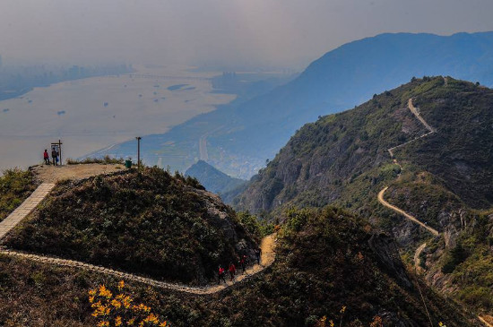 东蒙山是登山爱好者的首选之地,从市区进过瓯越大桥便可抵达东蒙山山脚,只需要不到20分钟的车程。从山脚往上进发,可以看到三天门入口,沿路攀登都是一阶阶水泥楼梯,路边的崖石可以看到“浙南第一洞天”、“天然画屏”等字样。